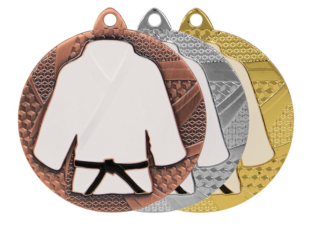 Tematická kovová medaila KARATE v troch základných farbách, zlatej, striebornej a bronzovej. Medailu je možné doplniť emblémom na zadnej strane o Ø 46 mm.
