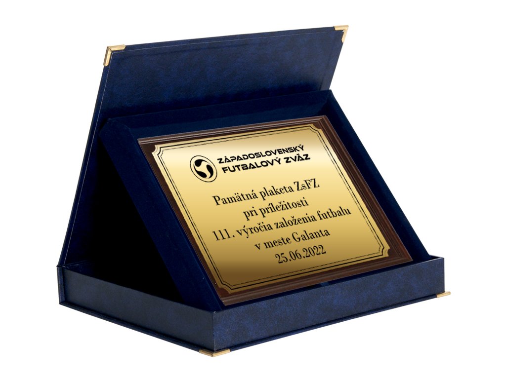 Modrá kazeta na plaketu na dreve. Výška kazety 4 cm.