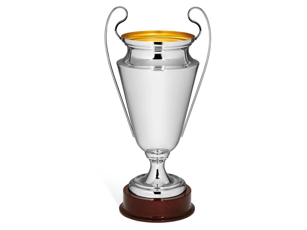Strieborný kovový pohár so zlatým vnútrom na drevenom podstavci na ktorý je možné umiestniť štítok s textom. Pohár je dostupný v štyroch veľkostiach.