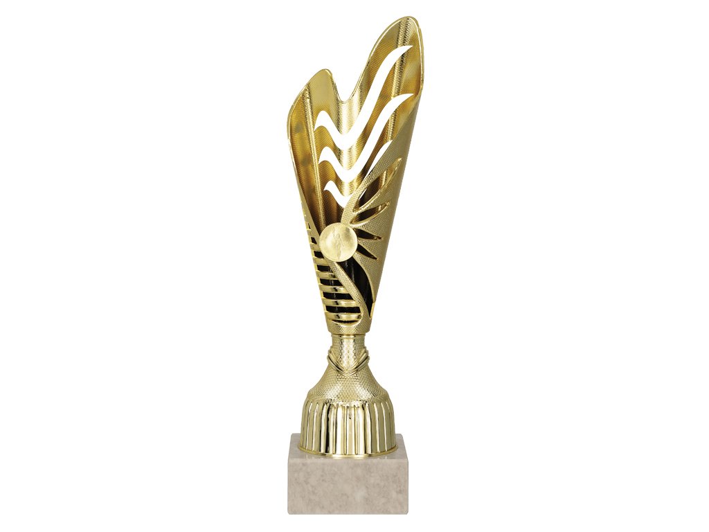 Zlatý plastový pohár na mramorovom podstavci na ktorý je možné umiestniť štítok a emblém o Ø 25 mm.