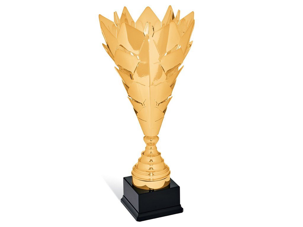 Zlatý kovový pohár na plastovom podstavci na ktorý je možné umiestniť štítok s textom. Pohár je dostupný v troch veľkostiach.