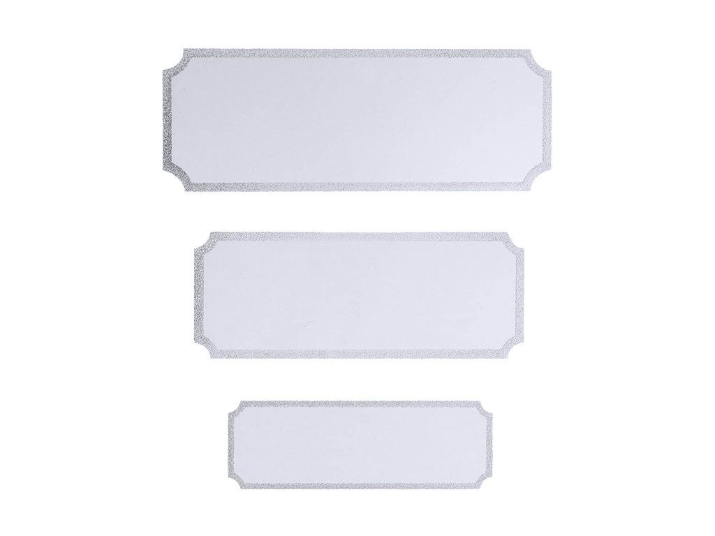 Štítok gravírovaný kovový strieborný v troch veľkostiach.